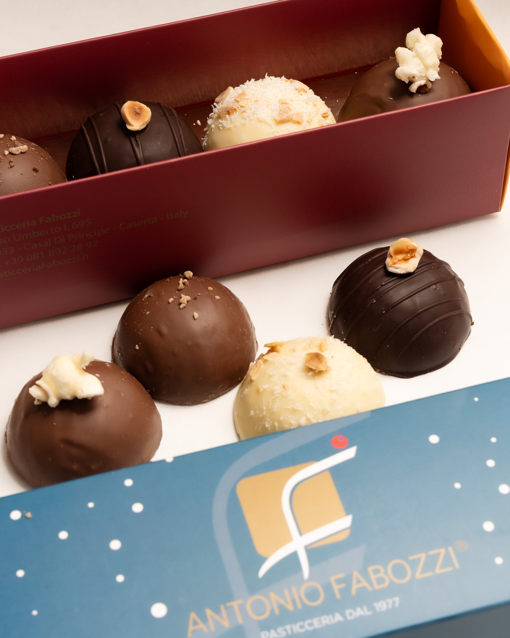 Un assortimento che unisce consistenze diverse e sapori armoniosi, realizzato con ingredienti selezionati e lavorazioni artigianali.