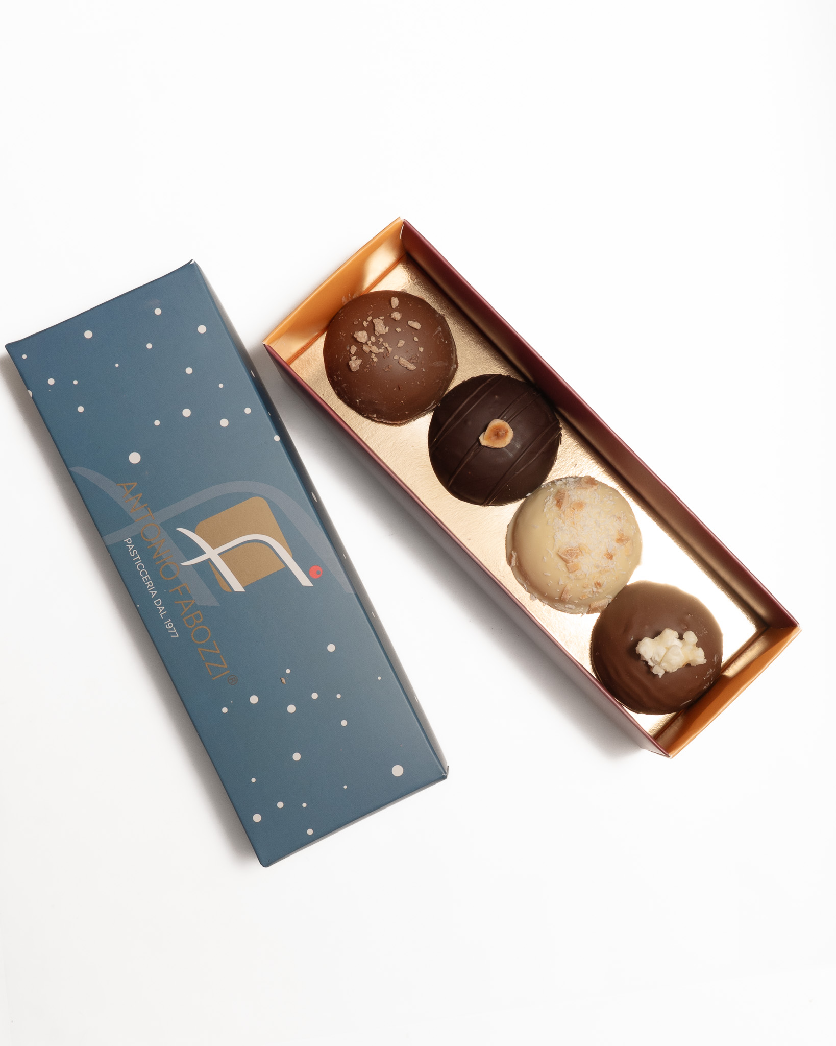 Una selezione di quattro snack dal gusto deciso e bilanciato, pensata per una pausa speciale o come piccolo regalo curato nei dettagli.