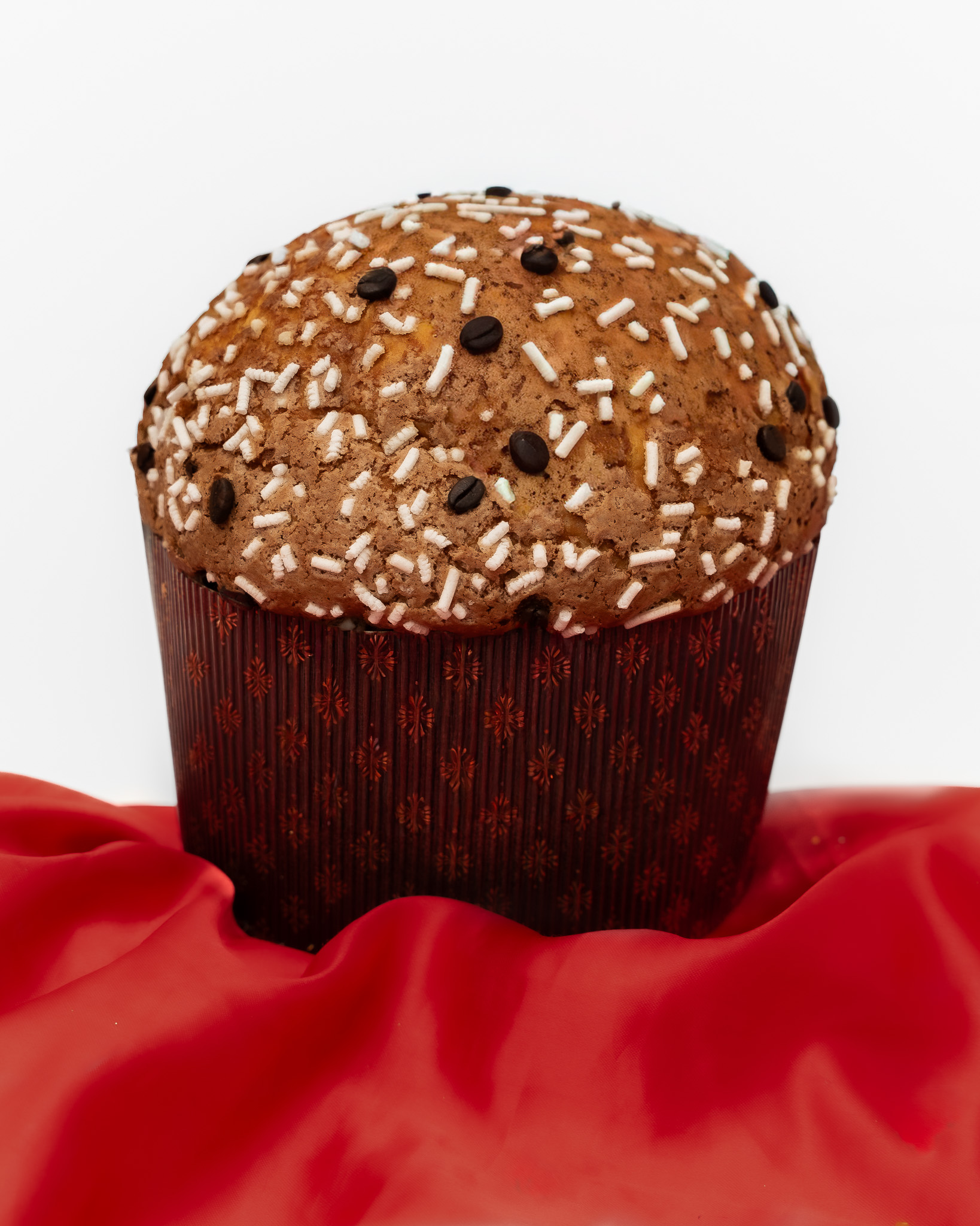 INGREDIENTI: farina di GRANO tenero tipo “00”, burro (da LATTE), acqua, zucchero, tuorlo d’UOVO, lievito naturale (da GRANO), semilavorato gusto caffè, cioccolato bianco (burro di cacao, zucchero, LATTE in polvere, zucchero caramellizzato, LATTE magro in polvere, emulsionante: lecitina di SOIA), caffè, cioccolato fondente extra (cacao min. 61%) (pasta di cacao, zucchero, burro di cacao, emulsionante: lecitina di SOIA, aroma naturale di vaniglia), chicchi di caffè ricoperti di cioccolato, aromi, stabilizzante: E414, agente di rivestimento: shellac, oli vegetali.